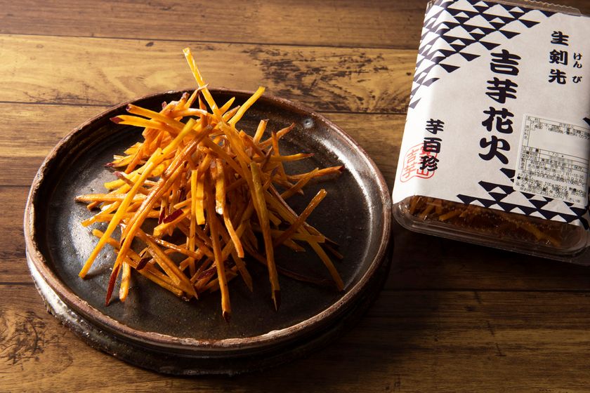 初代より吉芋の看板商品として人気の「吉芋花火」は、生のさつま芋を細切りにし、菜種油でカラッと揚げて自家製蜜をからめた細切り芋けんぴ。外はカリッと香ばしく、中はほろっとやわらかい半生タイプの新食感。一度食べ始めると止まらなくなる、やみつき必至の逸品です。