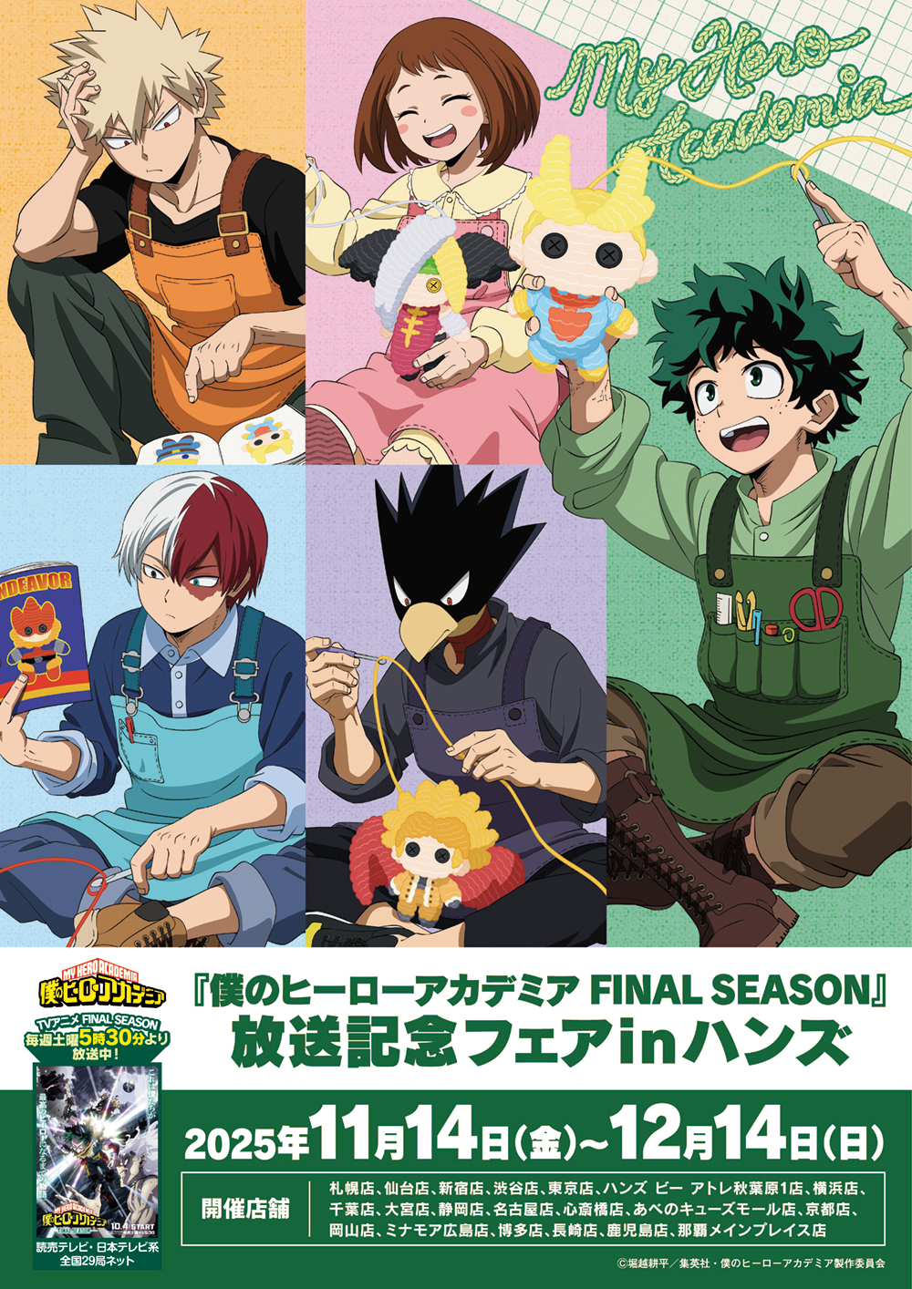 Mapion > ニュース > リリース > TVアニメ『僕のヒーローアカデミア FINAL SEASON』の放送を記念したフェアが全国のハンズ・ハンズ ビー 計20店舗にて開催決定!2025年11月14日(金)よりスタート!