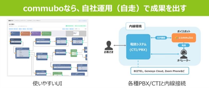 「commubo」は「継続的で」「複雑な」音声の会話に対応する自然会話AIボイスボットです。