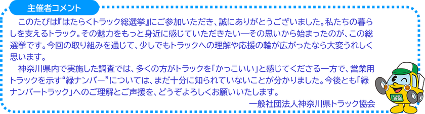 今回の結果が、多種多様な“はたらくトラック”への関心をさらに広げ、その魅力や役割への理解を深めるきっかけとなれば幸いです。