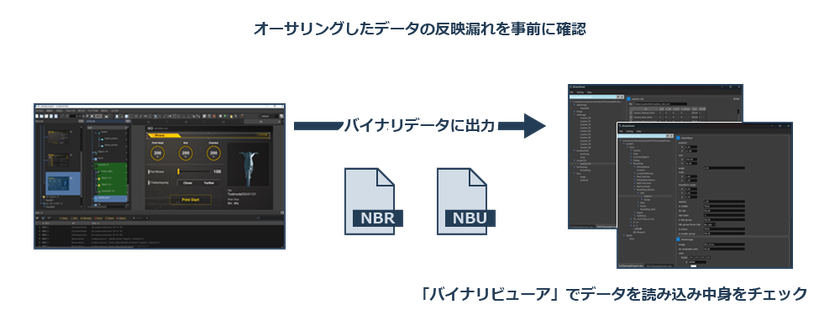 ランタイム向けバイナリデータの内容を視覚的に確認し、オーサリングデータの反映漏れを事前にチェックすることが可能になりました。デバッグ効率を大幅に向上させることができます。