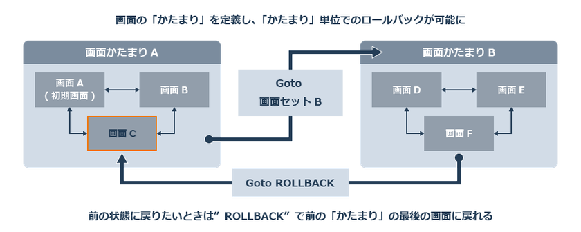 画面の「かたまり」を定義し、「かたまり」単位でのロールバックが可能に