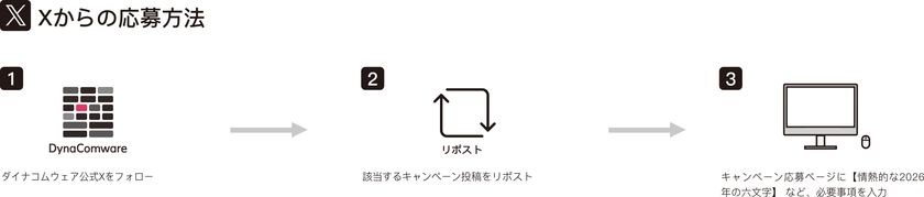 1.ダイナコムウェア公式X(@dynacomwareJP https://x.com/dynacomwareJP )をフォローしてください。