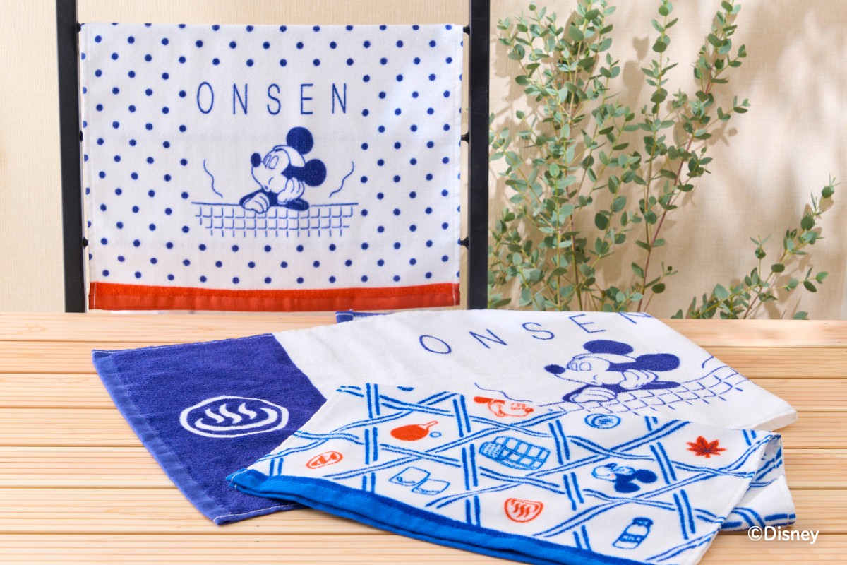 今回発売するのは、当社ならではの「温泉」をテーマにデザインされた全19アイテムです。メインとなるデザインには、ミッキーマウスがお風呂に浸かり「ほっ」と一息つく表情、少し火照った愛らしい表情などが描かれています。この他にも、温泉旅のワンシーンを切り取った、遊び心あふれるデザインをご用意しています。
