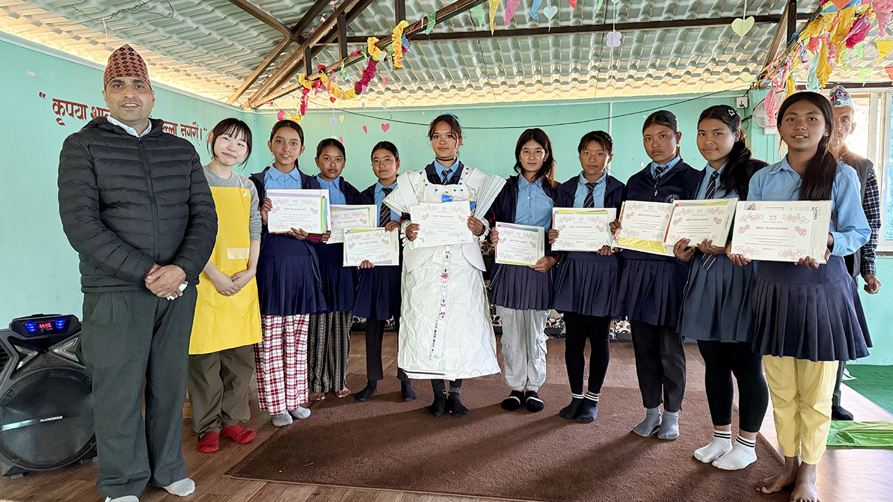 2024年に実施した「ラムチェ村ファッションショー」。グループで紙から服を作り上げるワークショップの優勝チーム。