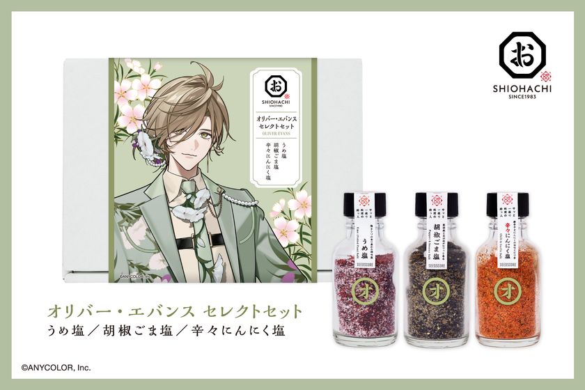 今回のコラボ企画では、「オリバー・エバンスさん」「フリオドールさん」「セイブルさん」の3名のライバーが厳選した「にじさんじ×しお八のセレクト塩セット」の店頭先行販売や、今回の企画のために撮り下ろしされた「和」をモチーフにしたグッズも多数登場いたします。