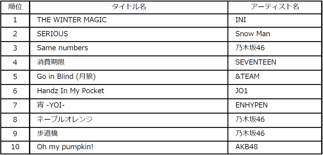 1位タイトル:『THE WINTER MAGIC』アーティスト:INI