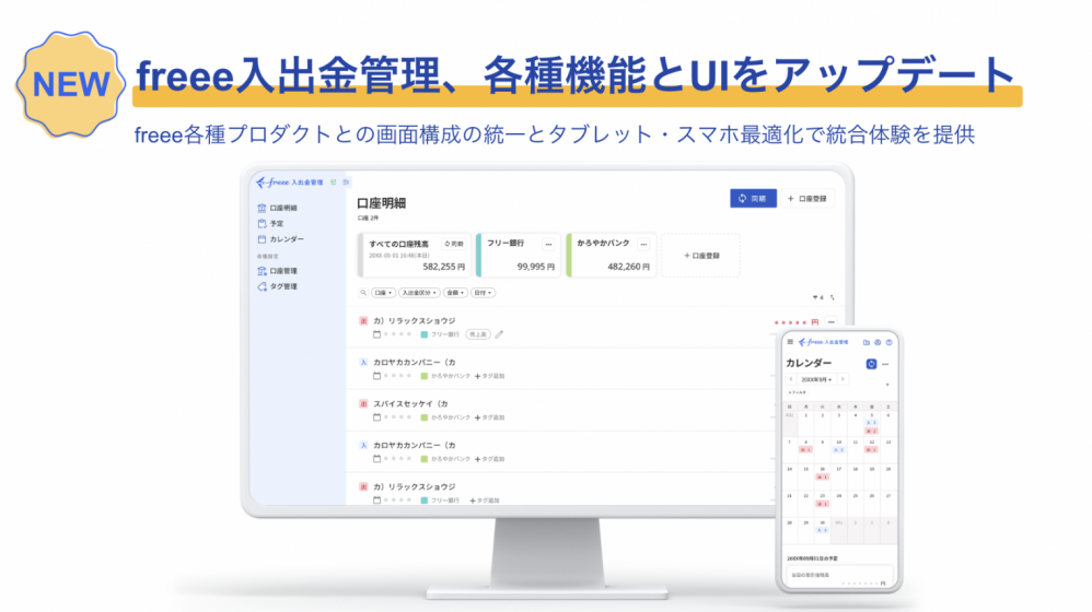 Mapion > ニュース > リリース > freee入出金管理、各種機能とUIをアップデート タブレットやスマートフォンでの利用がさらに便利に