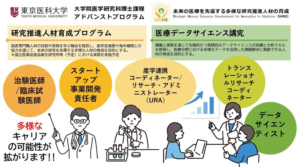Mapion > ニュース > リリース > 【東京医科大学】大学院医学研究科博士課程「アドバンストプログラム」として「研究推進人材育成プログラム」・「医療データサイエンス講究」を来春開講 ~「研究を動かす力」を身に付け、多様なキャリアの可能性を拡げる~