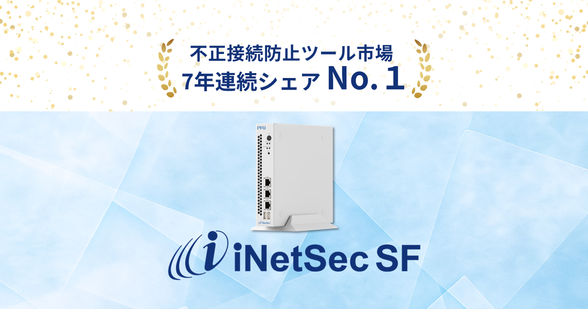 [画像1]https://digitalpr.jp/simg/2674/122097/700_367_20251107164509690da385f3870.png 株式会社PFUのセキュリティ対策アプライアンス「iNetSec SF」は、不正接続防止ツール市場においてシェア44%を獲得し、7年連続でシェアNo.1(注1)を獲得しました。 2024年は、製造業や医療分野におけるガイドライン対応ニーズの高まりを受け、当社製品の導入が加速し、シェアNo.1の達成に大きく貢献しました。