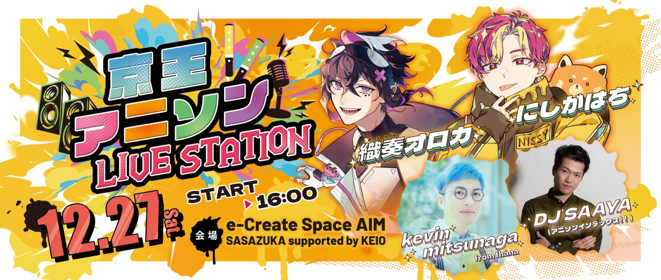 京王電鉄株式会社(本社:東京都多摩市、代表取締役社長:都村 智史、以下「京王電鉄」)は、社員起点オープンイノベーションプログラム「My turn」の採択案件である「インディーズアーティスト支援」にて、共創パートナーである株式会社any style(本社:東京都港区、代表取締役:萩原 湧人、以下「any style」)と連携して、12月27日(土)にライブイベント「京王アニソンLIVE STATION」をアーティスト支援実証実験として実施します。