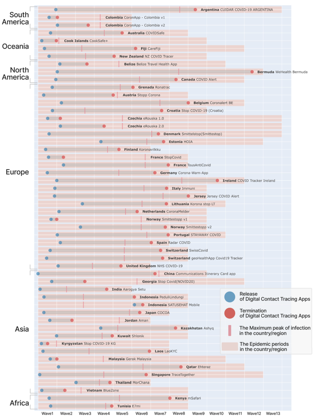 今回のパンデミックにおいて世界各国で導入されたデジタル接触確認アプリ(Digital Contact Tracing apps)は、日本にて導入された COCOA と同じく、その多くが既に運用を終了しています。