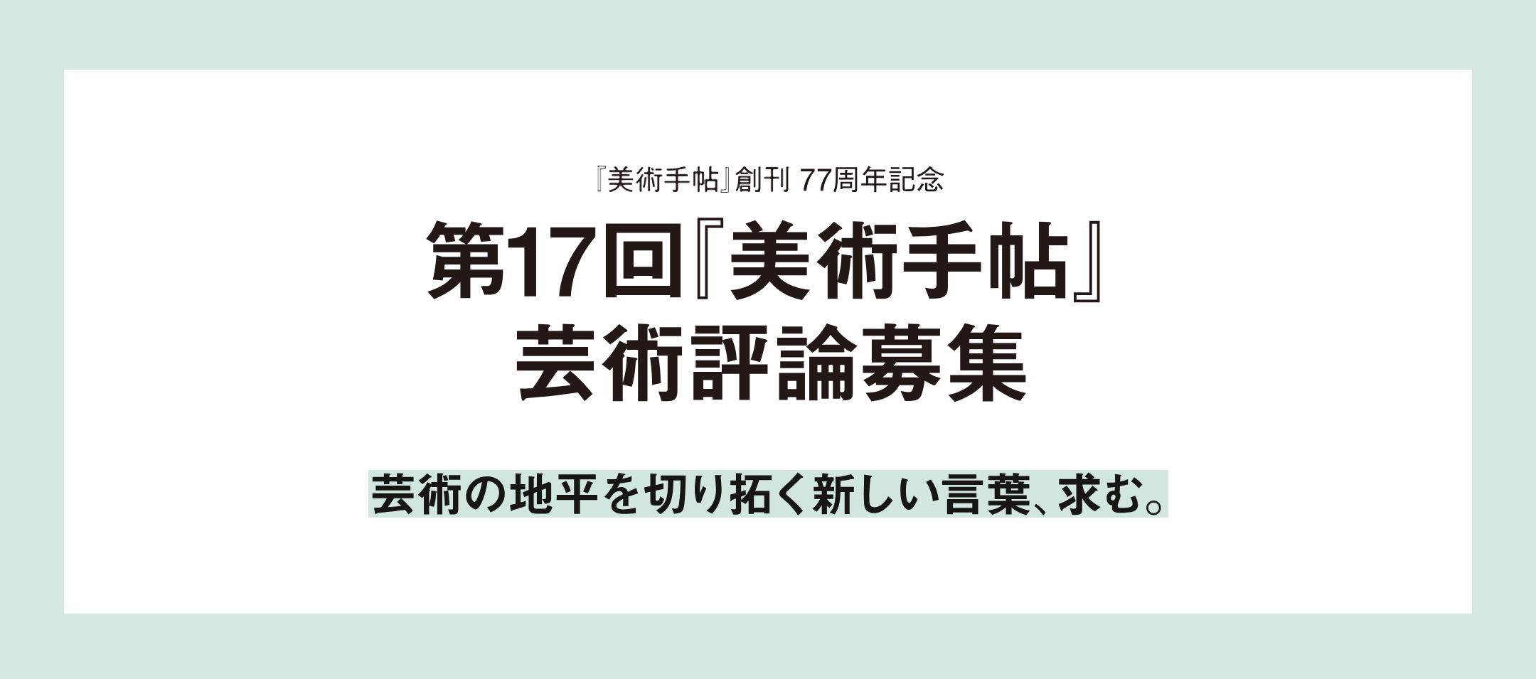 Mapion > ニュース > リリース > 【美術出版社】『美術手帖』創刊77周年記念 第17回『美術手帖』芸術評論募集のお知らせ