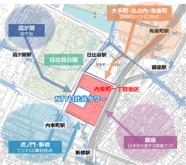 本取り組みの第一弾は、NTT都市開発と東京電力パワーグリッド株式会社が事業主として、東京都千代田区にて開発中の「NTT日比谷タワー」(2031年10月末竣工予定、以下「本タワー」)において推進され、本タワーを含む「内幸町一丁目街区※2」にて掲げる次世代スマートシティ実現の一端を担います。