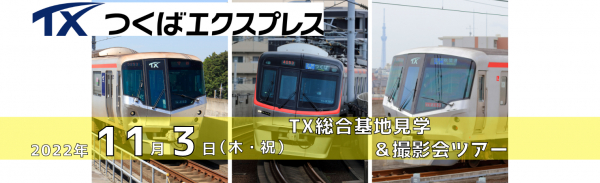 京成トラベルサービス(本社:千葉県八千代市、社長:松本 直範)では、つくばエクスプレスを運営する首都圏新都市鉄道株式会社の後援で、2022年11月3日(木・祝)に「つくばエクスプレス総合基地見学&撮影会ツ...