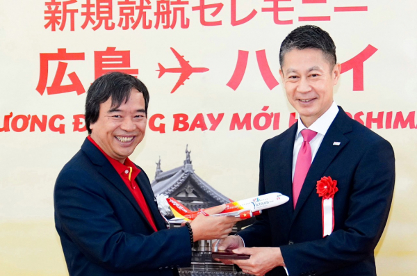 ベトジェットのウェン・ドゥック・ティエン副社長は日本の地方自治体やビジネスパートナーに感謝の意を表しつつ、「ベトジェットは現在、ベトナムの主要都市と東京、大阪、福岡、名古屋、そして今回の広島を結ぶフライトを週116便運航しています。今後ベトジェットはベトナムと日本を結ぶ路線をさらに拡充し、乗客の皆様に便利で安く、時間を節約できる旅行の選択肢を提供します。」とコメントしました。