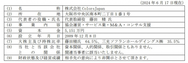 Mapion > ニュース > リリース > ColorsJapan社との業務提携によるM&A強化に関するお知らせ