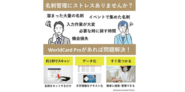 PenPower代理店のPAPAGO JAPAN株式会社(所在地:埼玉県川口市)は、名刺を約3秒でデータできる!USB接続名刺スキャナ「WorldCard Pro」を2024年6月21日(金)から発売いたします。※本製品はPenPower Technology ...