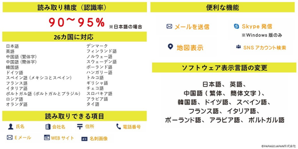 【26カ国語】 日本語を含む、英語や中国語など海外名刺にも対応。