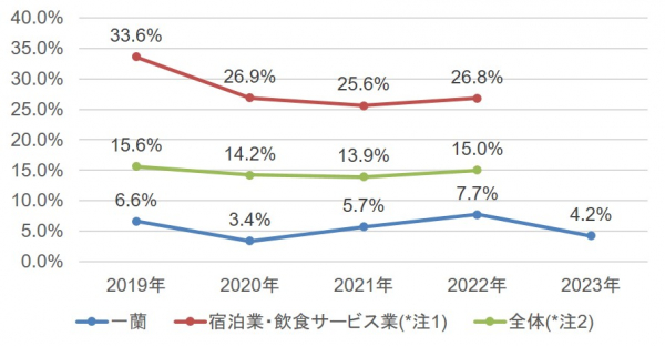 注意1・注2)厚生労働省「雇用動向調査結果の概況」産業別離職状況 2024年6月5日