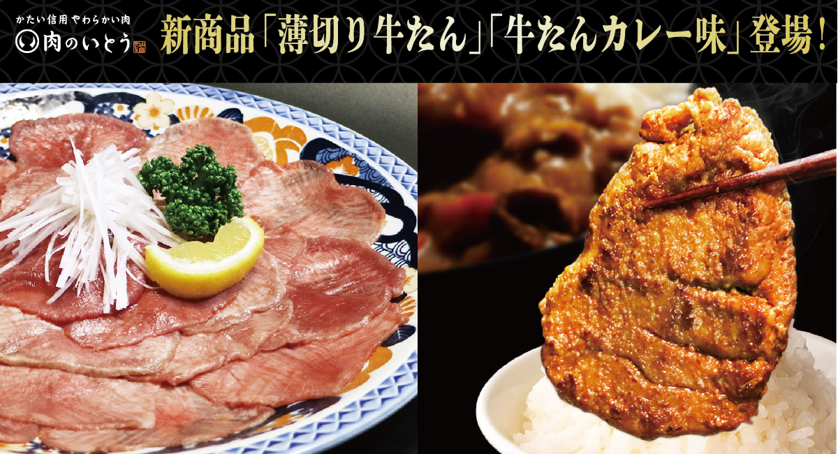 仙台で50年以上の歴史を誇る老舗肉専門店「肉のいとう」(本社:宮城県仙台市)は、人気の牛たんシリーズに新たな仲間として『薄切り牛たん』と『牛たんカレー味』を発売いたしました。「薄切りも食べたい」というお客様からの声に応えた『薄切り牛たん』は、やわらかい食感と旨みを活かし、短時間で手軽に調理できるのが特徴です。また、スパイスの香りが食欲をそそる『牛たんカレー味』は、牛たんと相性抜群のスパイスをオリジナル配合した新感覚の商品。どちらもご家庭で簡単に本格的な味わいを楽しめる新商品として、仙台名物牛たんの魅力をより幅広く体験していただけます。