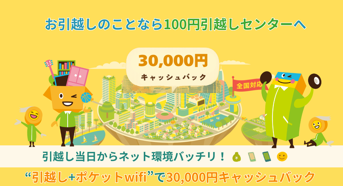 転勤族や単身赴任者にとって、引越し先での固定回線工事は時間的・経済的に大きな負担となっています。工事日程の調整や立ち会い、さらに初期費用の支払いは、引越し準備と重なる時期に大きなストレスを生みます。特に短期間での転居が繰り返されるケースでは、その都度の工事が現実的でなく、「引越し直後にインターネットが使えない」という不便を経験する利用者も少なくありません。こうした課題を解消するため、100円引越しセンターでは、「引越し費用の軽減」と「通信環境の即時確保」を同時に実現できるサービスを展開。2025年9月1日から9月30日までの期間限定で、引越しと同時にポケットWiFiを申し込まれた方を対象に、30,000円のキャッシュバックを実施しております。