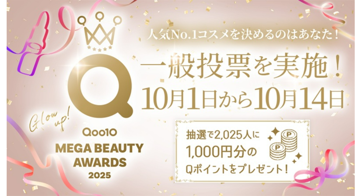 インターネット総合ショッピングモール「Qoo10(キューテン)」を運営するeBay Japan合同会社(本社:東京都港区、代表取締役:グ ジャヒョン)は、今年初めて開催する「Qoo10 MEGA BEAUTY AWARDS 2025」の受賞商品を選定するため、お客様による一般投票を、2025年10月1日(水)から10月14日(火)まで募集します。