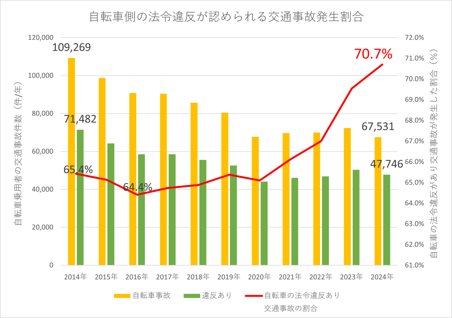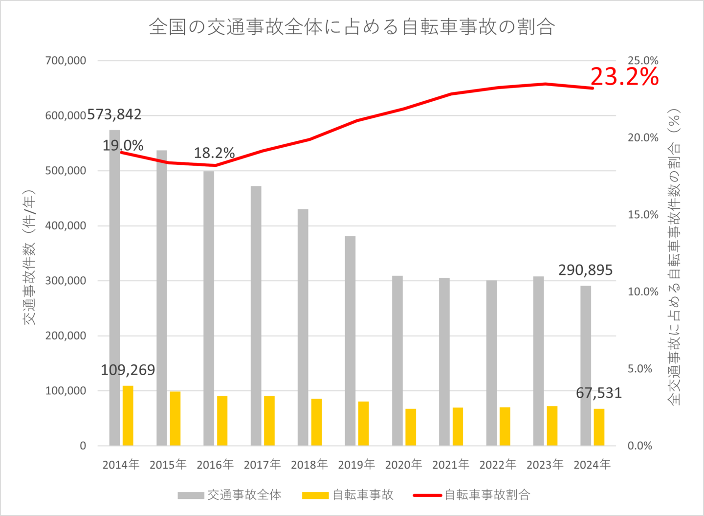 2025年9月30日は「交通事故死ゼロを目指す日」です。近年、国内における交通事故件数は減少傾向にあるものの、自転車が関わる事故の割合は増加傾向、自転車が当事者となった交通事故の約7割は自転車側に何らかの法令違反が認められます。