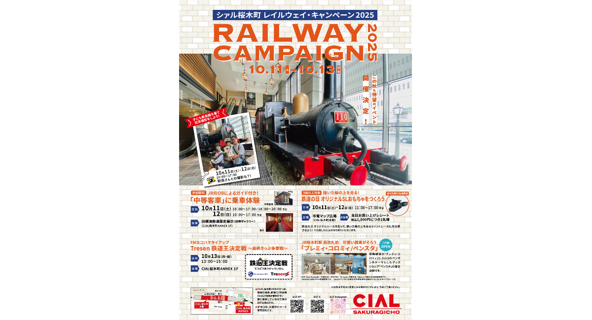 CIAL桜木町ANNEX ・CIAL桜木町では、毎年大人気のレイルウェイ・キャンペーンを今年も開催決定!10/11(土)〜13(月•祝)に開催致します。