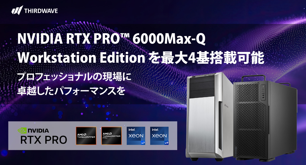 Mapion > ニュース > リリース > 【サードウェーブ】ワークステーション計4モデルに NVIDIA RTX PRO 6000Max-Q Workstation Editionのカスタマイズを追加