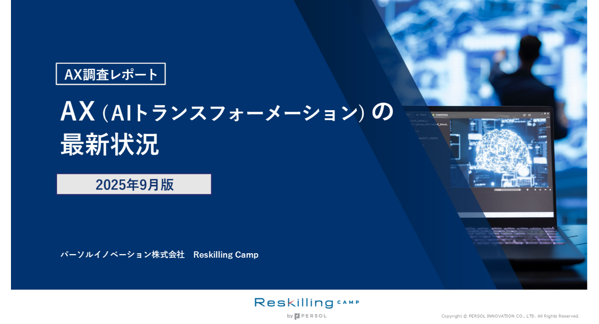 「はたらいて、笑おう。」をビジョンに掲げるパーソルグループのパーソルイノベーション株式会社 Reskilling Camp Company(本社:東京都港区、Reskilling Camp Company代表:柿内 秀賢)が展開する、リスキリング支援サービス『Reskilling Camp(リスキリング キャンプ)』( https://www.reskillingcamp.jp/ )は、今回初めて、全国の企業にお勤めの方を対象に、「AX※(AIトランスフォーメーション)」の取り組みに関する調査を行いましたので、その結果をお知らせします。