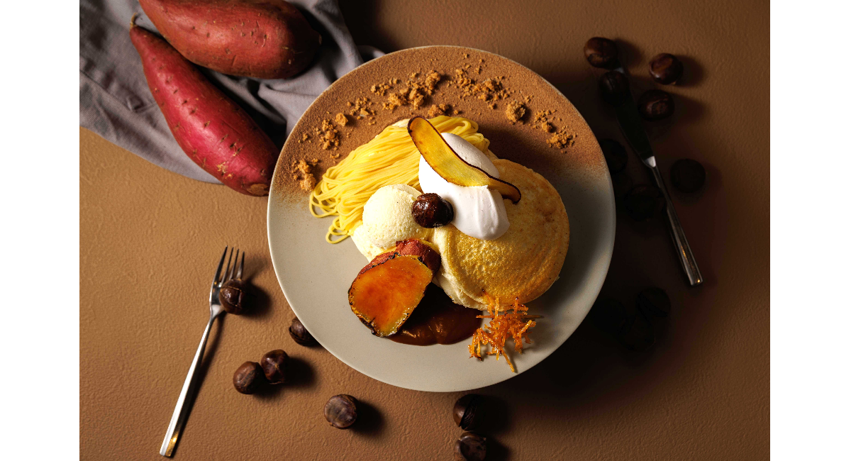 ぴあアリーナMM館外2FのALL DAY CAFE & DINING “The Blue Bell” では、秋の味覚を贅沢に重ねた『“Autumn-Brown”蜜芋キャラメリゼとモンブランクリームのパンケーキ』を10/11(土)~11/30(日)の期間限定で販売します。