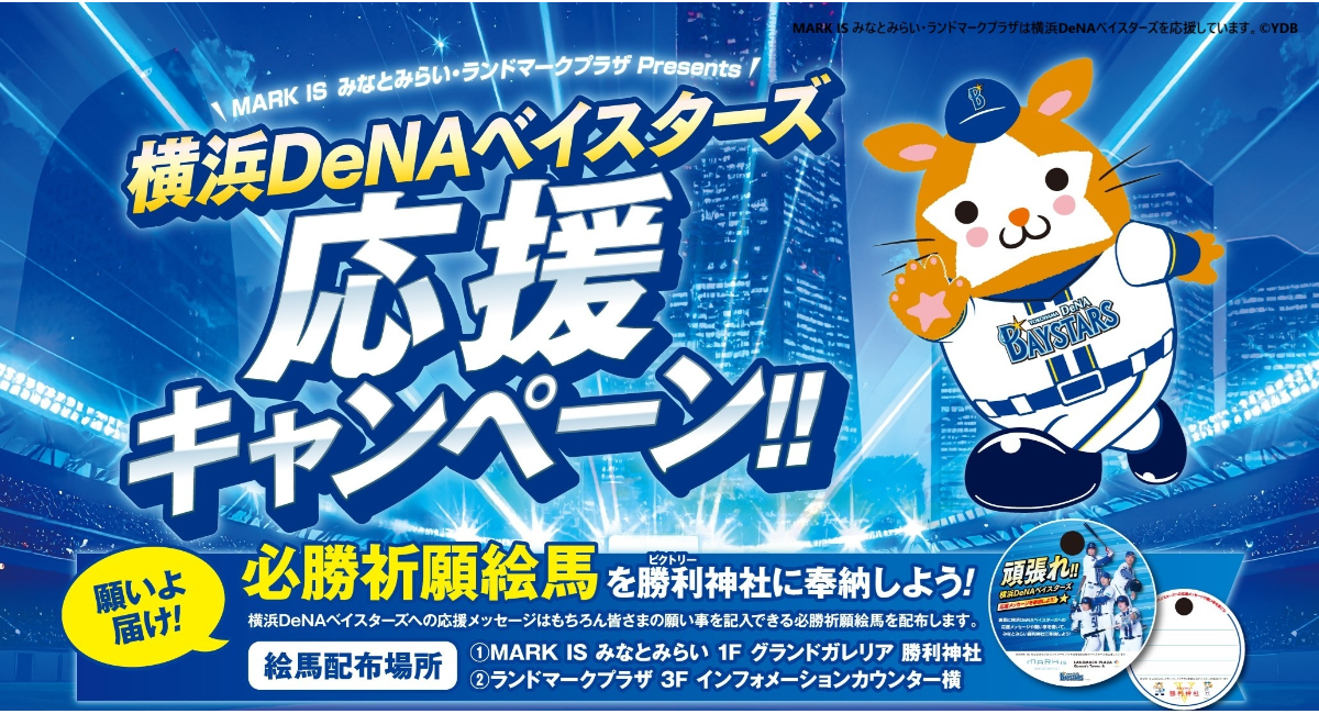 MARK IS みなとみらいと、横浜ランドマークタワー・ランドマークプラザは、10月11日(土)より、「横浜奪首」のスローガンを掲げて熱い試合を繰り広げてきた横浜DeNAベイスターズの「JERA セ・リーグ 2025」での健闘を称えるとともに、「2025 JERA クライマックスシリーズ セ」を両施設一丸となってチーム・選手を応援するべく「横浜DeNAベイスターズ 応援キャンペーン」を開催します。